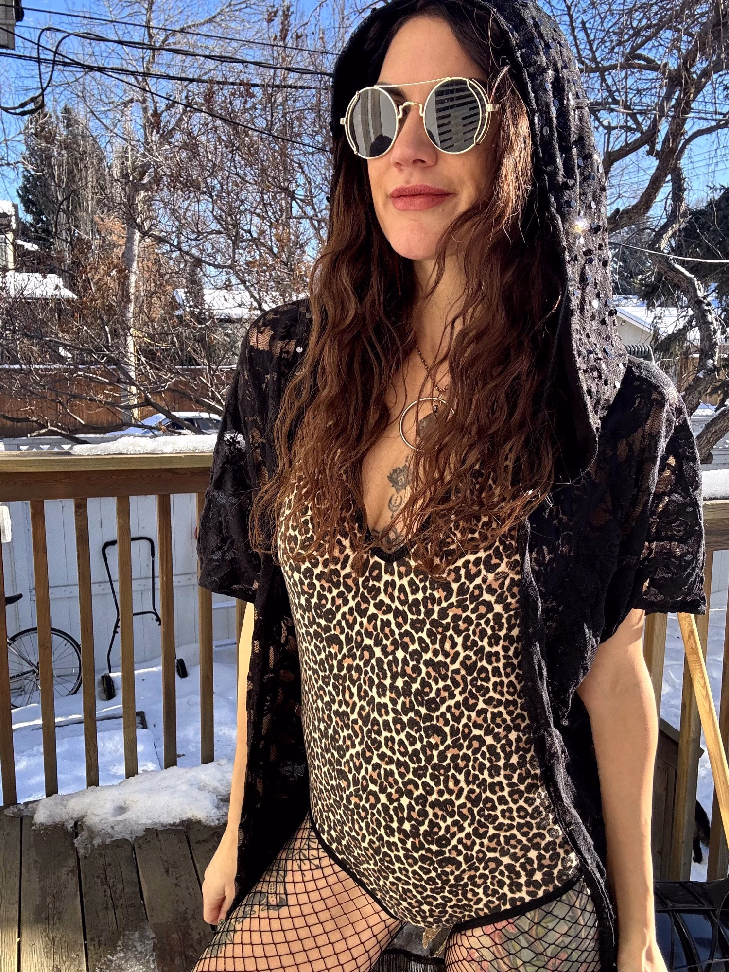 Velvet pattern with mesh back, sparkle hood